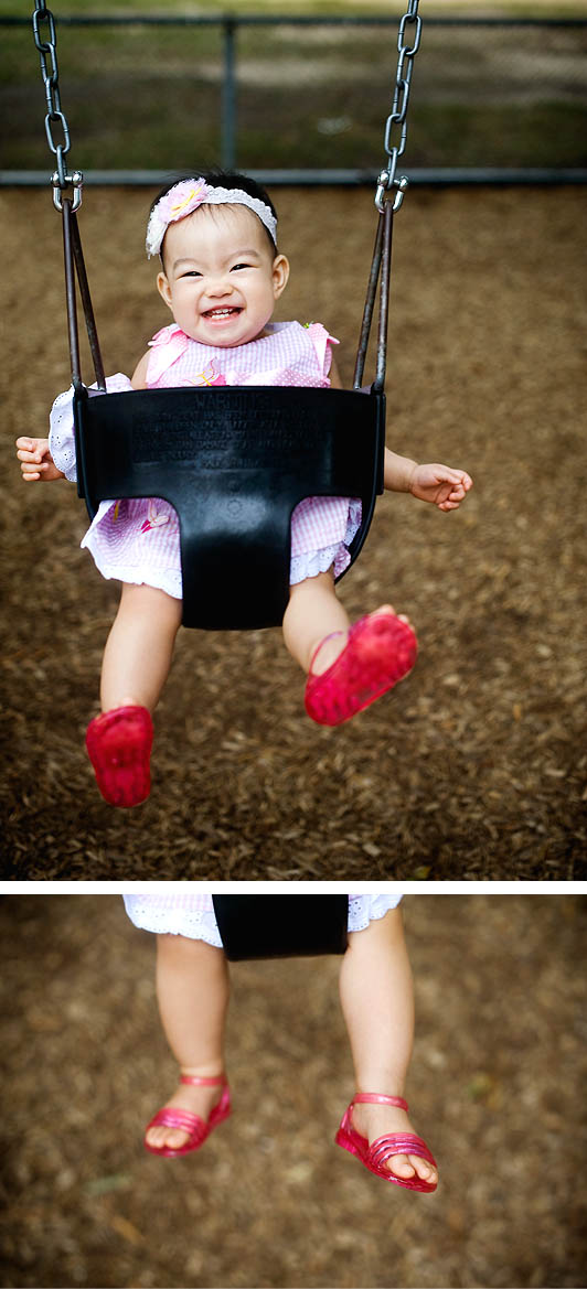 swinging in a swing and pink baby girl jellies :)